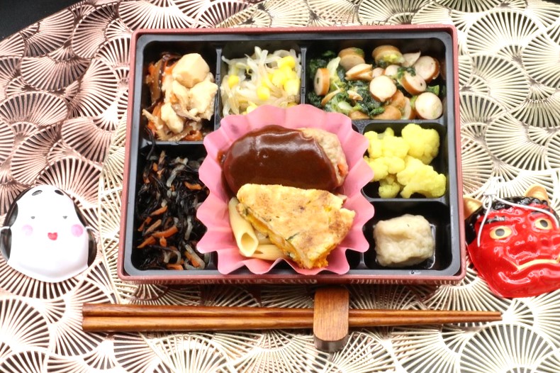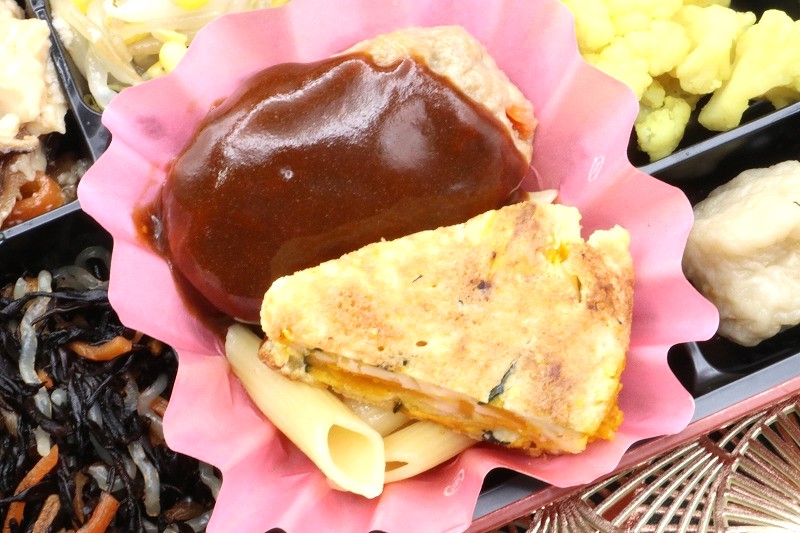 本日のメニューは、野菜つくねです🥢野菜の甘みと食感をぎゅっと閉じ込めた 野菜つくね を😊コク深い デミグラスソース で仕上げました🥣野菜の旨みが引き立ち😋満足感のある味わいのお弁当を🍱ぜひご賞味ください🎸