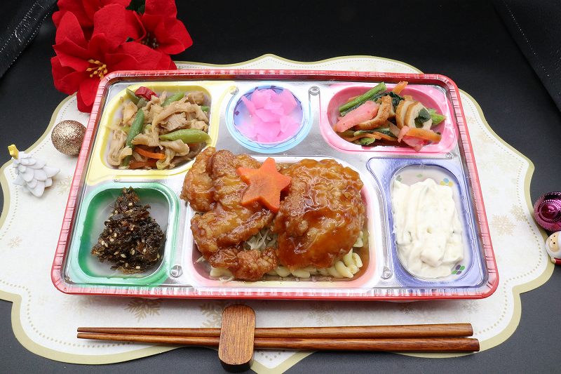 本日のメニューは、ボリューム満点!チキン南蛮です✨鶏肉に特製の甘酢ダレを絡め🎺さらに濃厚なタルタルソースをたっぷり添えたボリューム満点のメニューです😋ぜひお召し上がりください💗