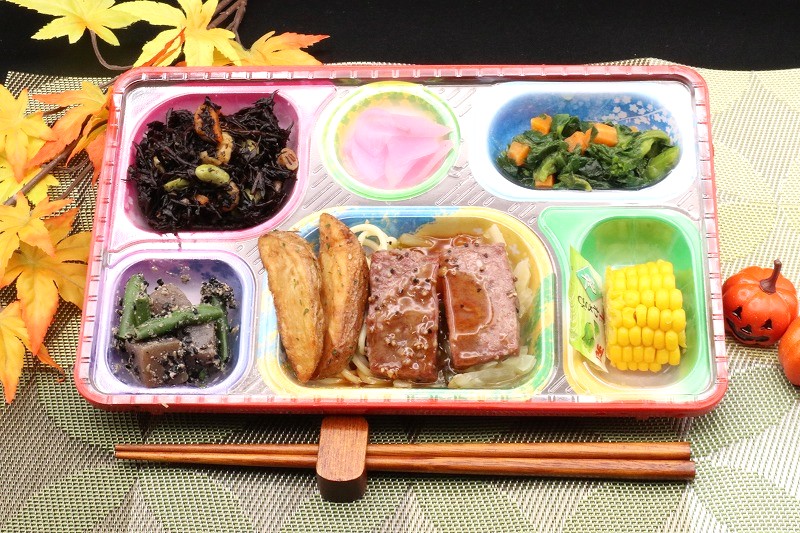 本日のメニューは、ミニステーキ&わさび添えです🧛🏻♂️ハロウィンの今日はちょっぴり変わったメニューの登場です🎉わさびとミニステーキは言うまでもなく相性抜群💝ぜひ楽しんでお召し上がりください😋