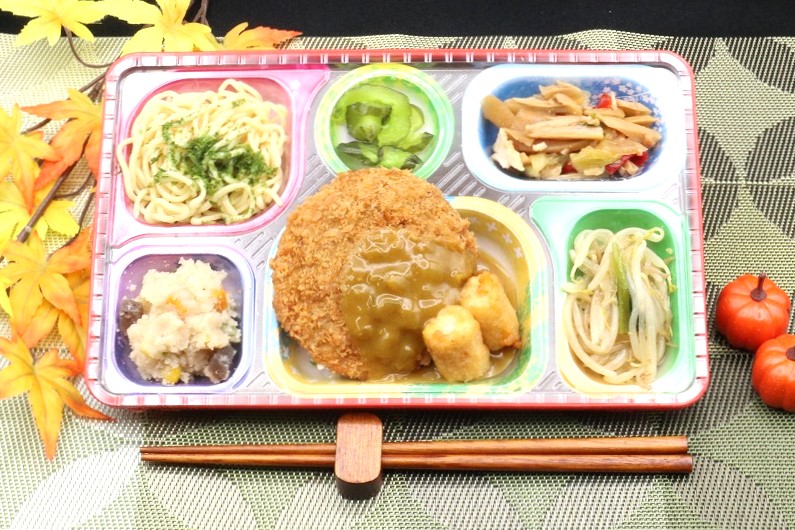 本日のメニューは、メンチカツ&カレーソースです😆サクサクの衣に包まれたジューシーなメンチカツに🎶スパイス香るカレーソースをたっぷりかけました🥣食欲をそそる1品を✨ぜひお召し上がりください💫