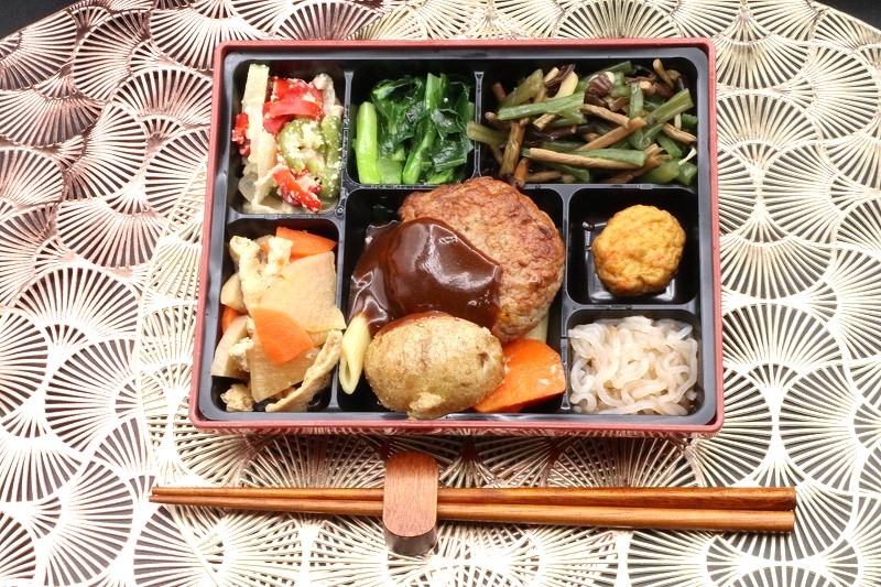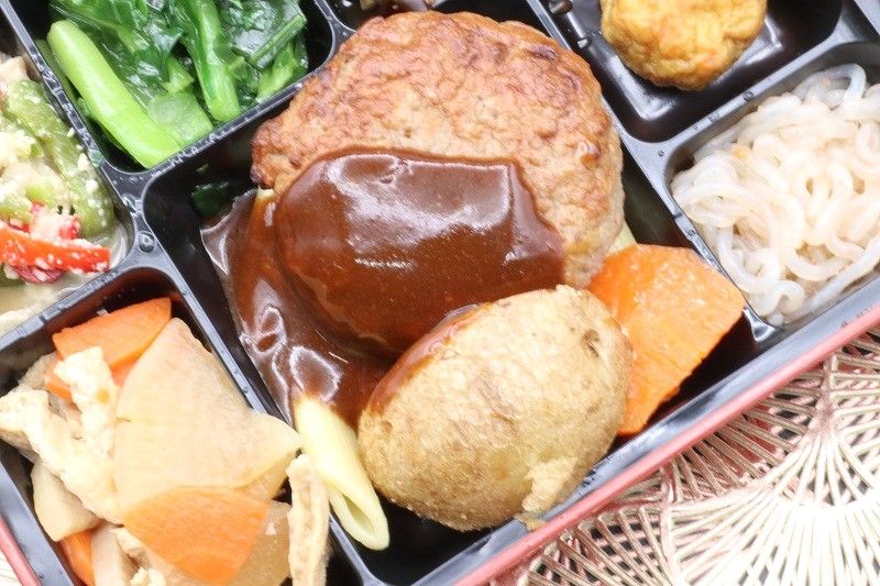 本日のメニューは、チーズハンバーグです🍽️ふっくらと焼き上げたハンバーグに😊とろりと溶けるチーズをインしコク深いデミソースで仕上げました😋濃厚な味わいながら栄養バランスにも配慮したお弁当となっておりま⚖️すぜひ召し上がってみてください🌹