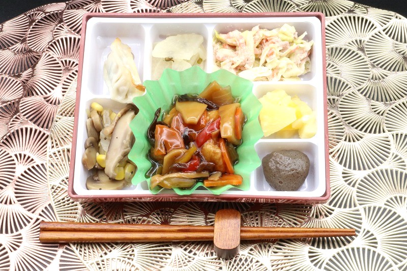 日替わり:白身魚フライ🍅トマトソース 健美膳(要前日予約):黒酢酢豚🎹