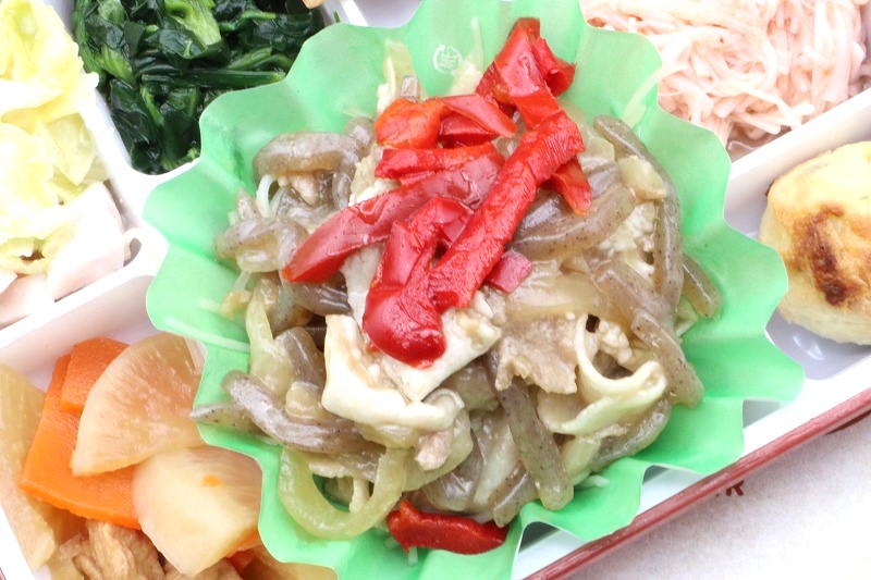 本日のメニューは豚肉とこんにゃくのオイスター炒めです🎀こんにゃくの食感と、ジューシーな豚肉の旨みをオイスターソースで包み込んだ一品です👑濃厚でコクのある味わいでご飯がどんどん進むこと間違いなし🎼ぜひ皆さんでお召し上がりください✨