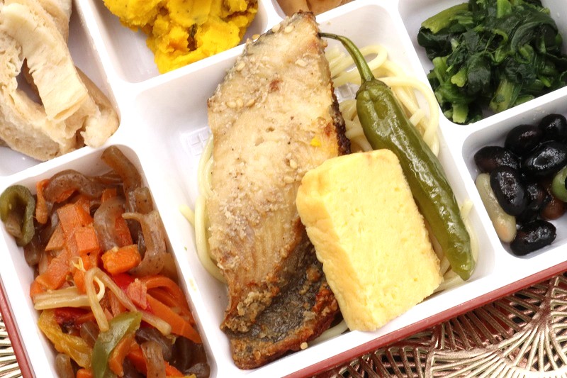 日替わり:鶏肉の西京焼き🎼焼きビーフン 健美膳(要前日予約):ホッケ利休焼き🎣