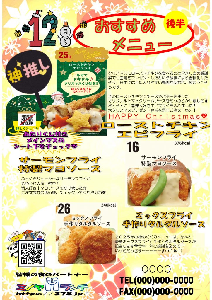 12月後半のおすすめメニューです🧸皆さまのご注文をぜひお待ちしております💐