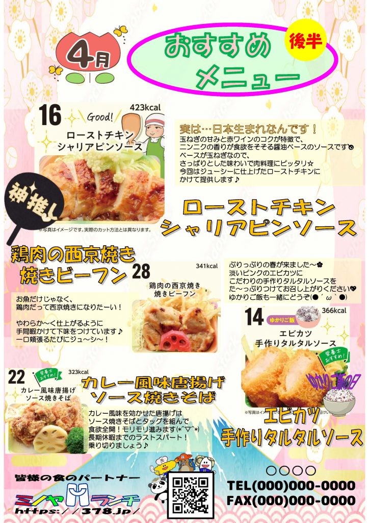 4月後半のおすすめメニューです🎀皆さまのご注文をぜひお待ちしております💐