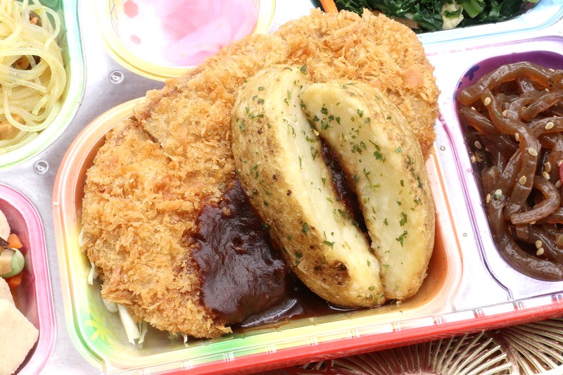 日替わり:照り焼きハンバーグ🤠マヨソース 健美膳(要前日予約):タラ七味唐揚げ💥