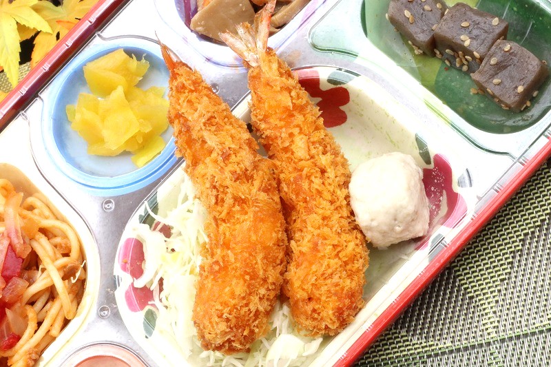 日替わり:エビフライ🥇手作りタルタルソース 健美膳(要前日予約):野菜つくね🎡